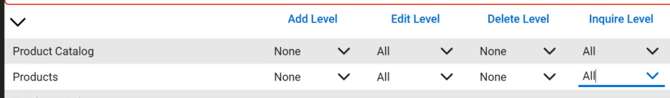 - Expand Procurement and grant Edit and Inquire to Product Catalog and Products.