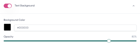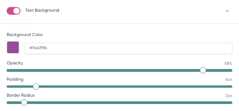 - Apply a Text Background to both Heading and Subheading. Set different shades of the colors in the background and have an opacity around 80%. Adjust the Padding so there’s enough room around the text on both elements.