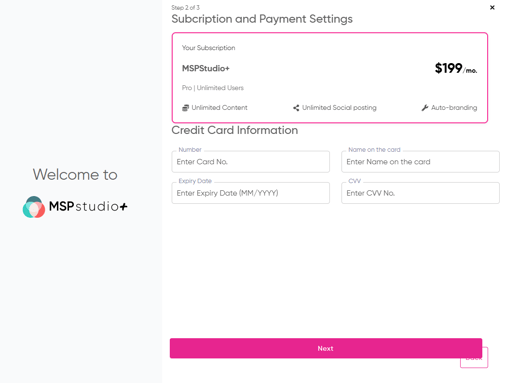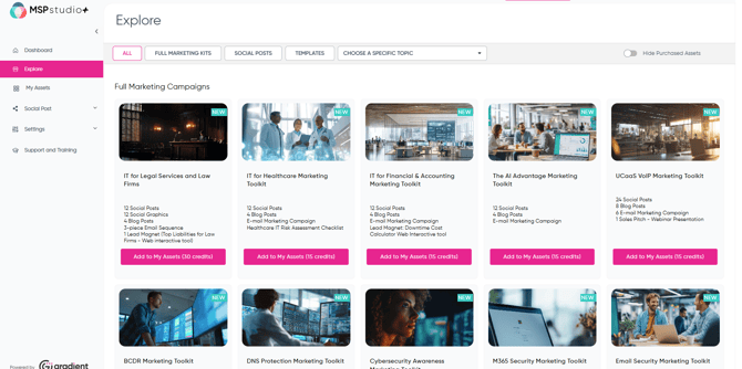 The setup wizard only takes a few moments and makes using the content in MSPStudio+ on-brand and ready to go in moments.