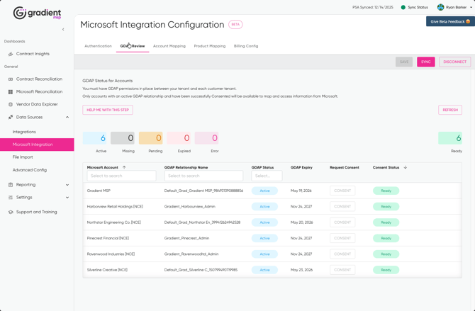 Use Refresh after making GDAP changes outside Gradient.