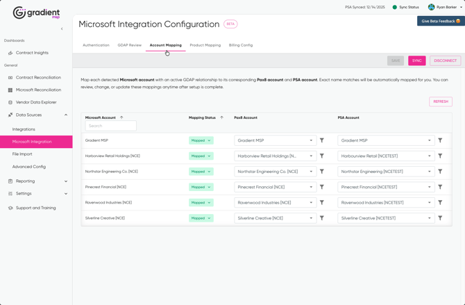 Account Mapping controls how Microsoft tenants are linked to Distributor accounts and PSA accounts.