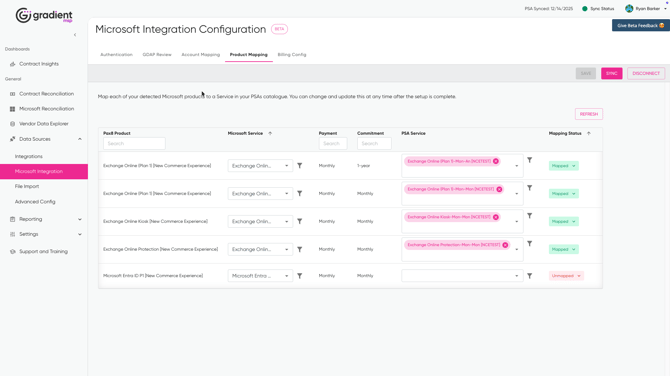Product Mapping controls how Distributor and Microsoft SKUs are tied to PSA services.